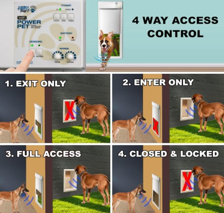 ✅ 4-Way Access Control for Customizable Use: The door offers 4 access modes, in only, out only, full access, and closed and locked. Great for controlling your pet’s movements.
